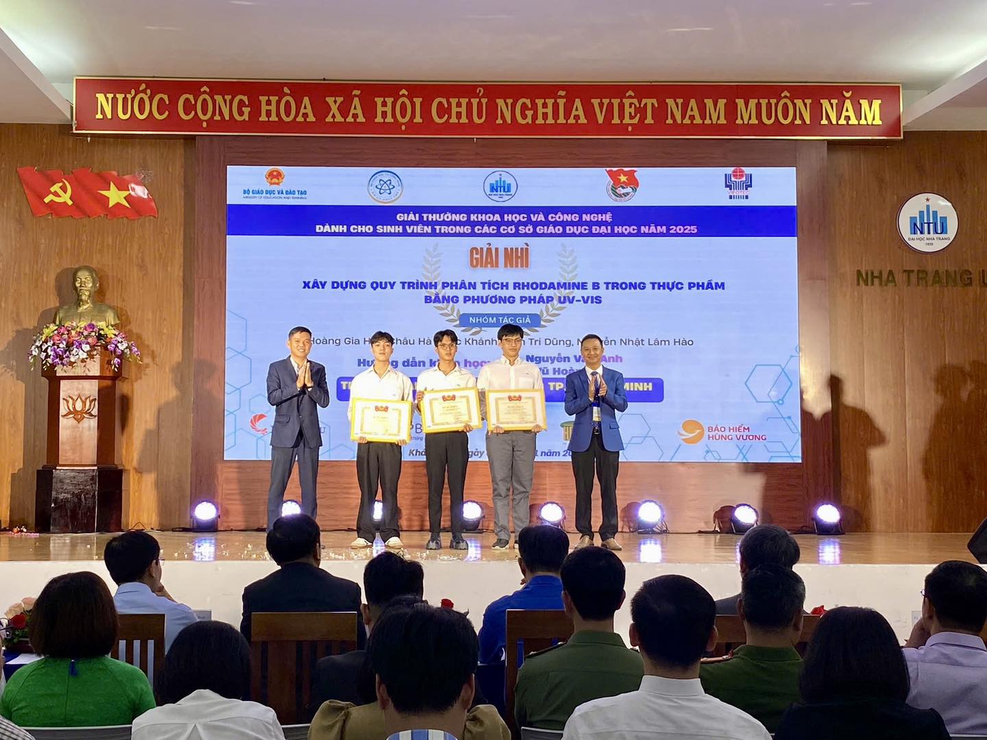 Sáng nay, 08/11/2025, tại Khánh Hoà đã diễn ra Lễ Tổng kết Giải thưởng Khoa học và Công nghệ dành cho sinh viên trong các cơ sở giáo dục đại học năm 2025, do Bộ Giáo dục & Đào tạo, Bộ Khoa học & Công nghệ, Trung ương Đoàn TNCS Hồ Chí Minh và Quỹ Hỗ trợ Sáng tạo Kỹ thuật Việt Nam phối hợp tổ chức. Năm 2025, Giải thưởng thu hút 112 cơ sở giáo dục đại học với 628 đề tài thuộc 06 lĩnh vực. Vòng Chung khảo và Lễ Tổng kết được tổ chức tại Nha Trang từ ngày 05 đến 08/11/2025, với 125 đề tài xuất sắc đến từ 58 cơ sở giáo dục đại học trên toàn quốc.