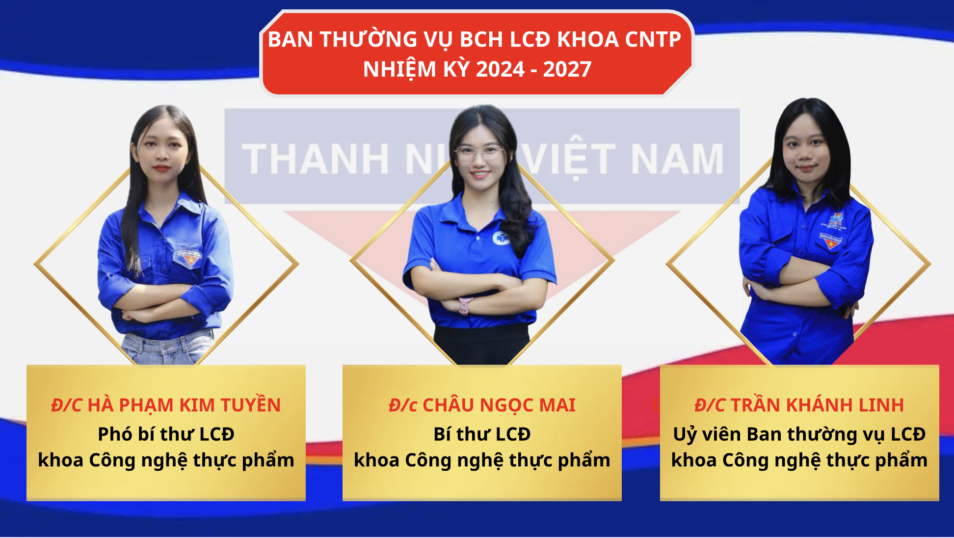 1. Đ/c Châu Ngọc Mai - Bí thư LCĐ khoa Công nghệ thực phẩm