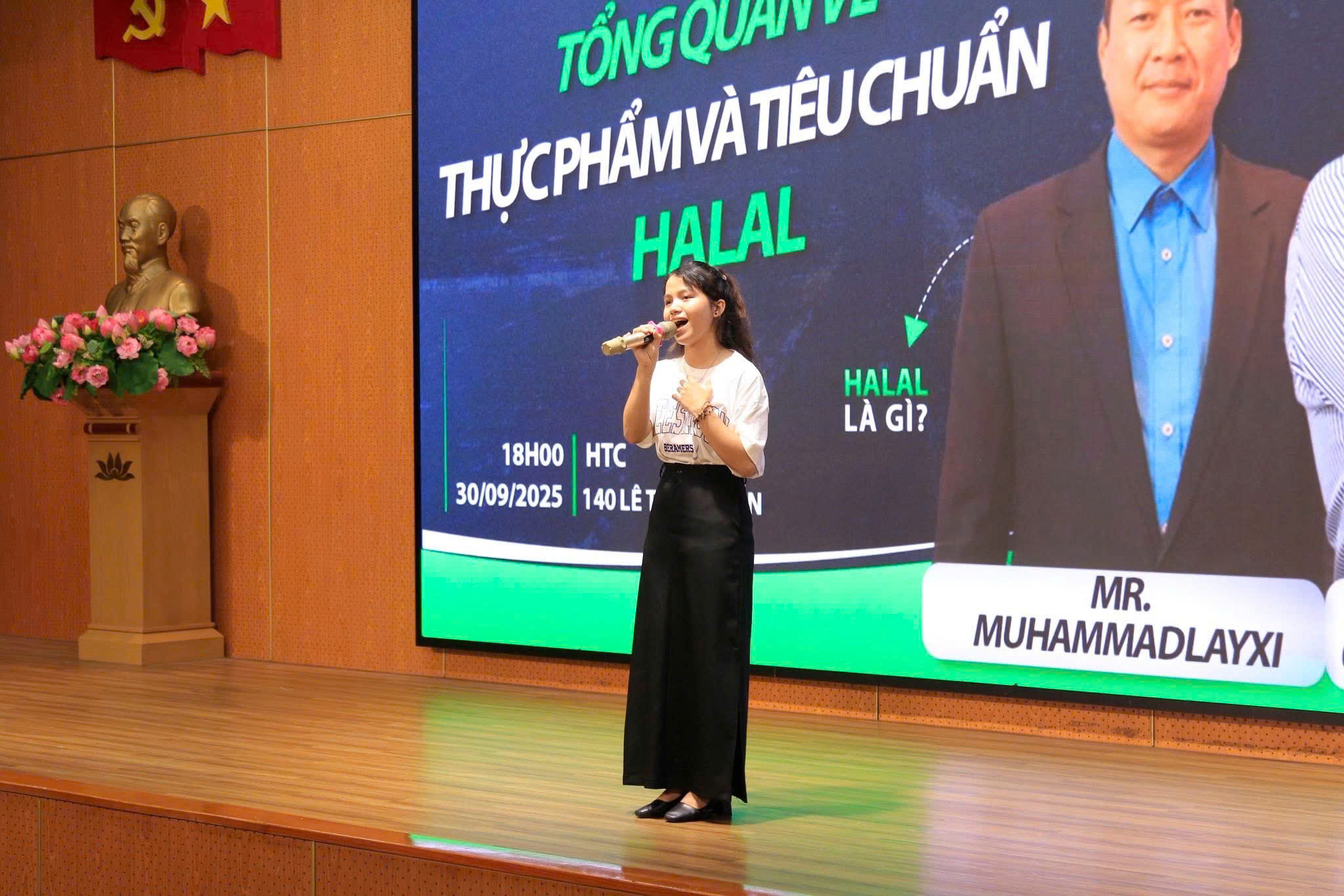 - Đồng thời, diễn giả cũng đã phân tích mối nguy Halal trong chuỗi thực phẩm, đề xuất biện pháp kiểm soát cũng như định hướng cho sinh viên về cơ hội nghề nghiệp trong lĩnh vực Halal.