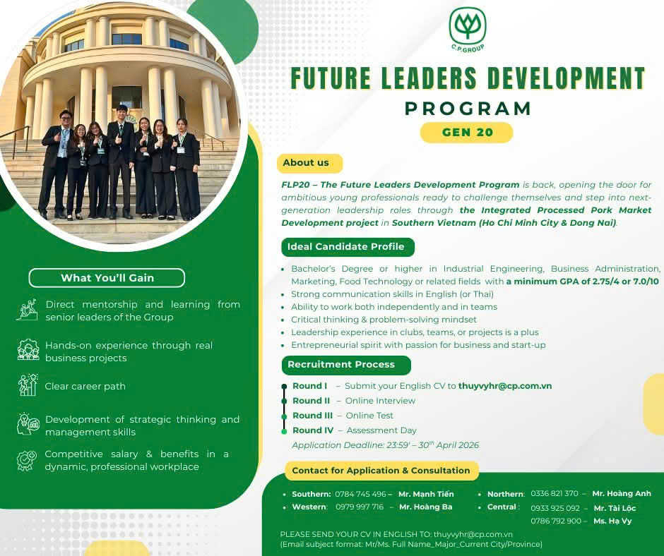🌟 [C.P. VIỆT NAM] CHƯƠNG TRÌNH PHÁT TRIỂN LÃNH ĐẠO TƯƠNG LAI – FUTURE LEADERS DEVELOPMENT PROGRAM (FLP20) 🌟